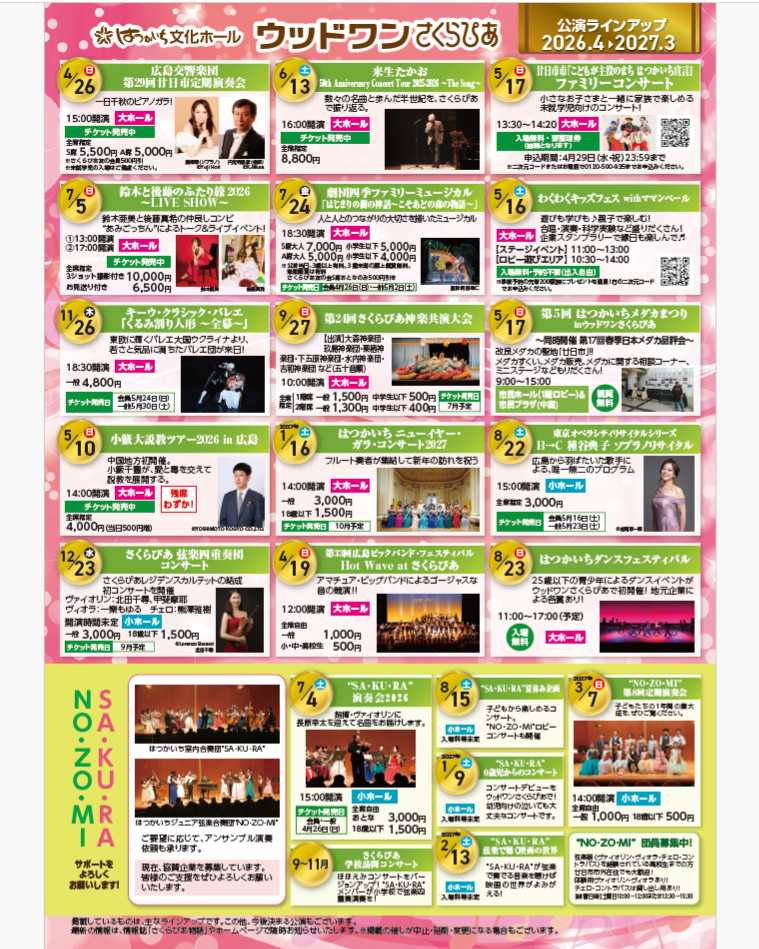 ウッドワンさくらぴあ 2026年度のラインアップ が出来上がりました。廿日市市内や近隣地域各所に設置しています。