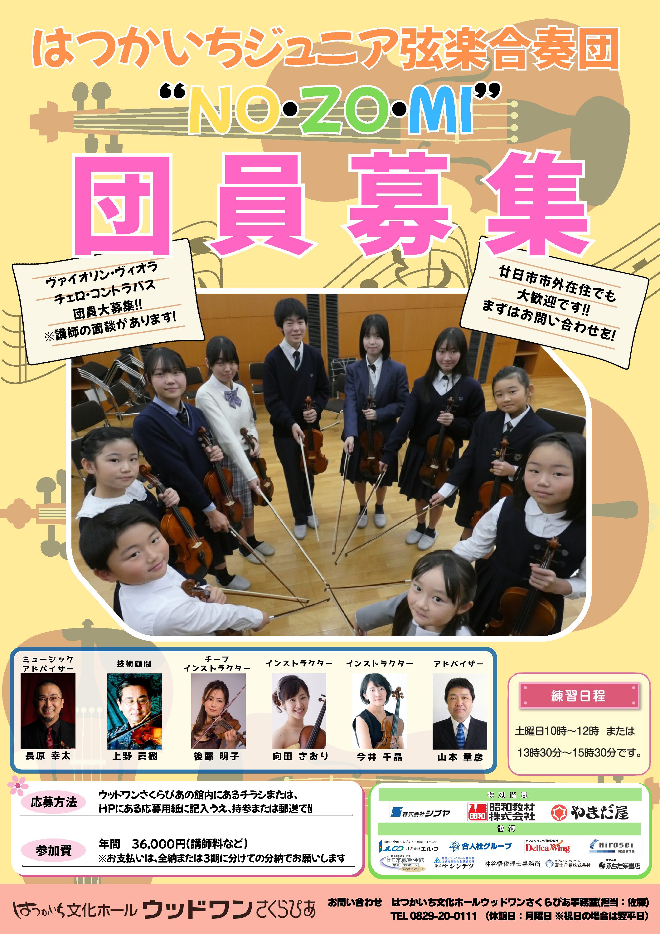 【募集】はつかいちジュニア弦楽合奏団“NO・ZO・MI”2026年03月1日(日)〜 2027年03月31日(水)- 会場: