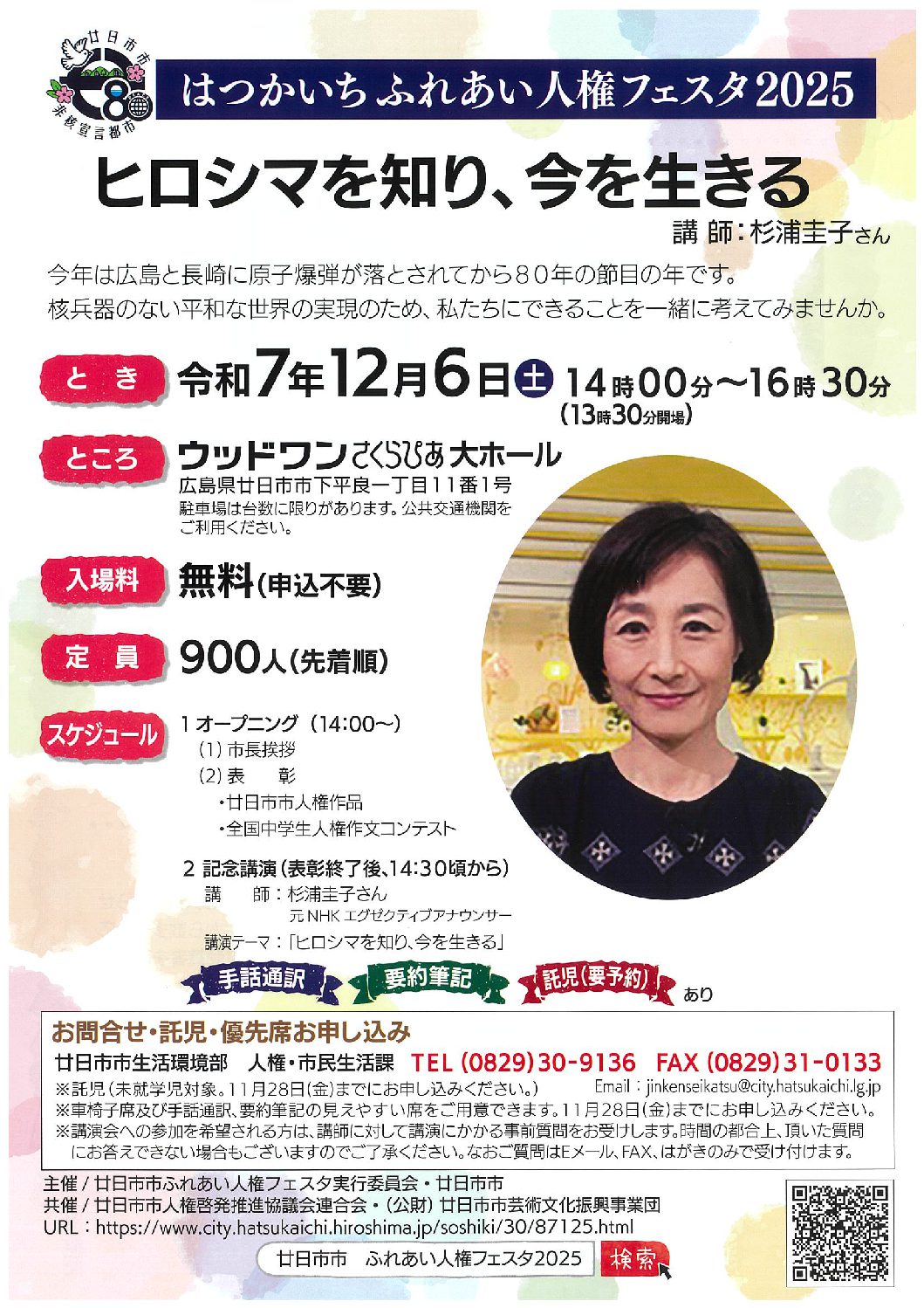 はつかいちふれあい人権フェスタ2025 ヒロシマを知り、今を生きる2025年12月6日(土)