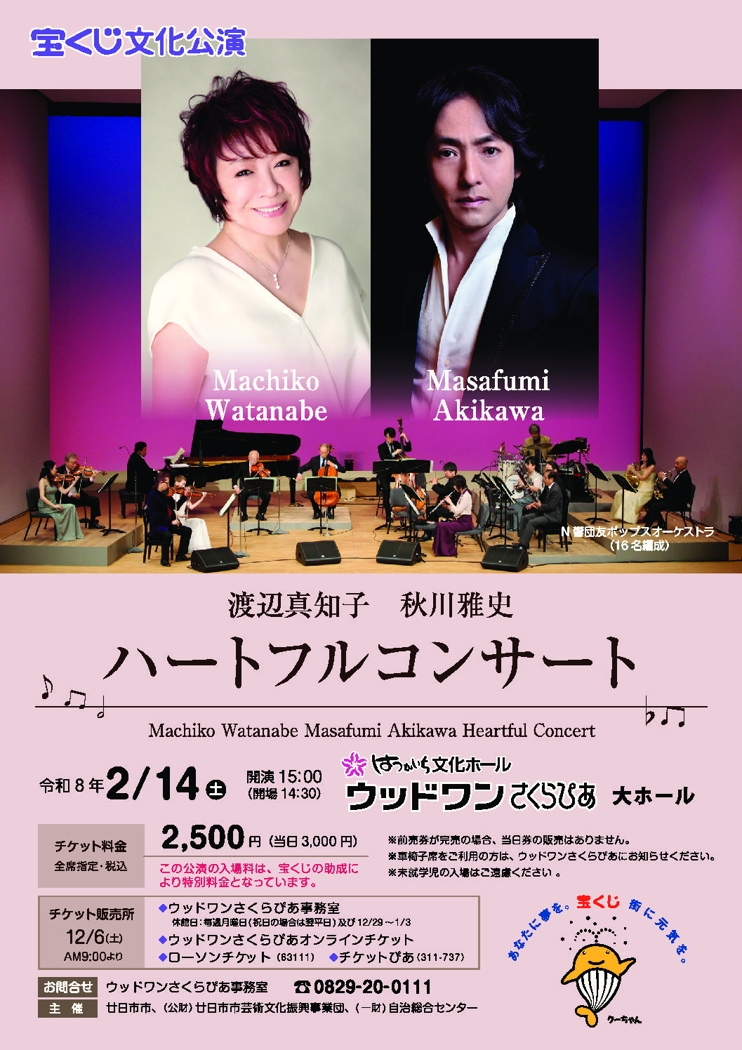 渡辺真知子・秋川雅史 ハートフルコンサート2026年02月14日(土)- 会場: