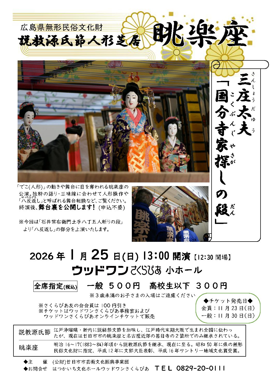 説教源氏節人形芝居「眺楽座」2026年01月25日(日)- 会場:
