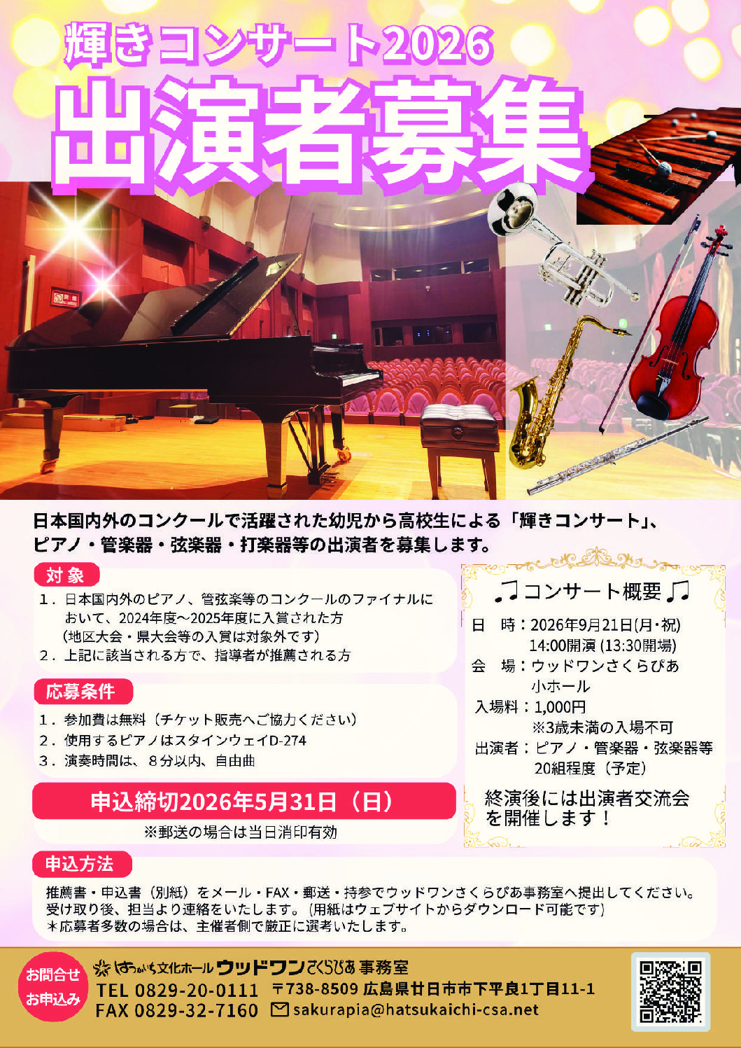 【募集】輝きコンサート出演者募集2026年05月31日(日)- 会場: