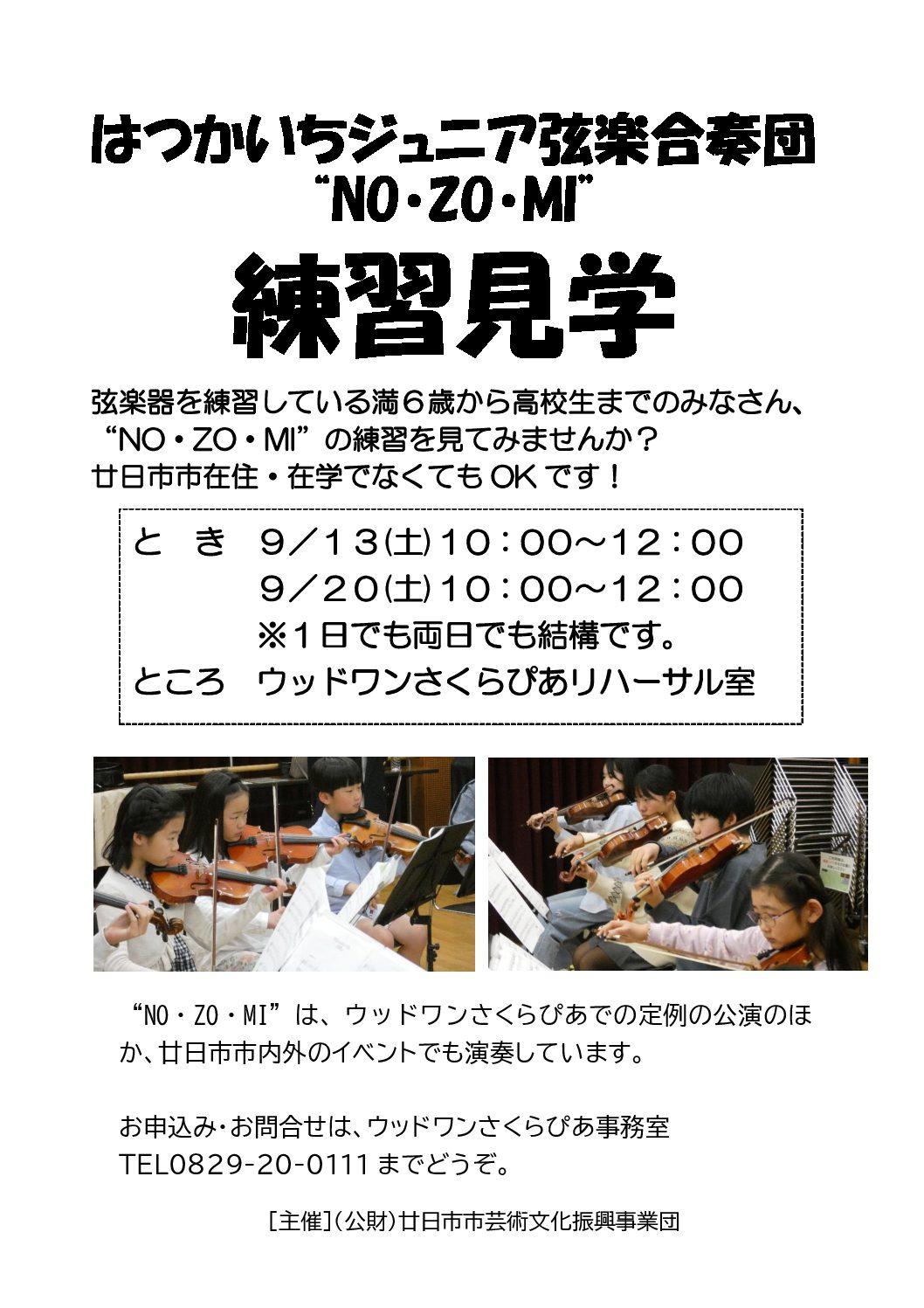 はつかいちジュニア弦楽合奏団 “NO・ZO・MI” 練習見学会開催!2025年09月13日(土)- 会場: